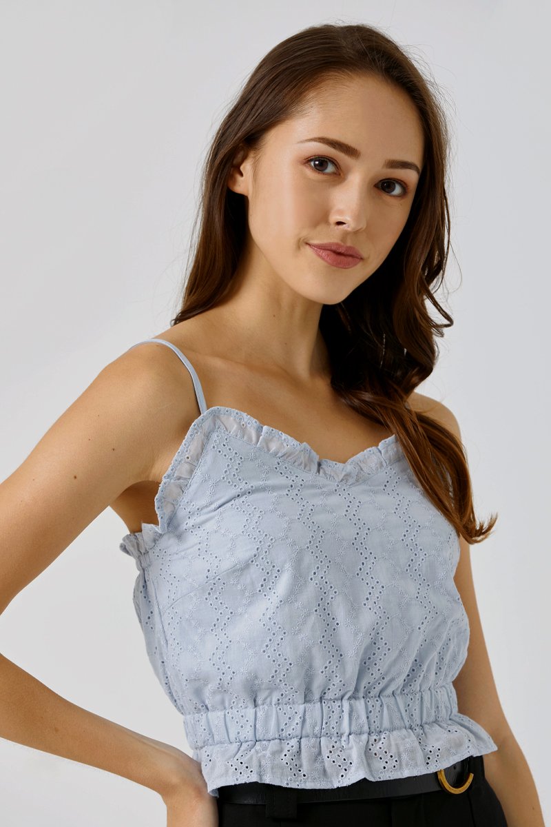 Kristie Eyelet Spaghetti Camisole Sky