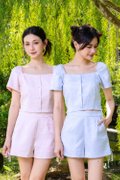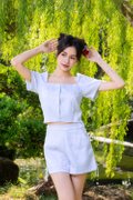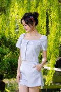 Model Y is HEIGHT 162CM, PTP 16.4”, WAIST 12.4”, HIPS 17”, wearing size S.