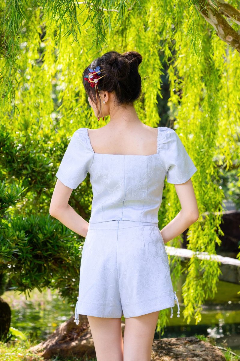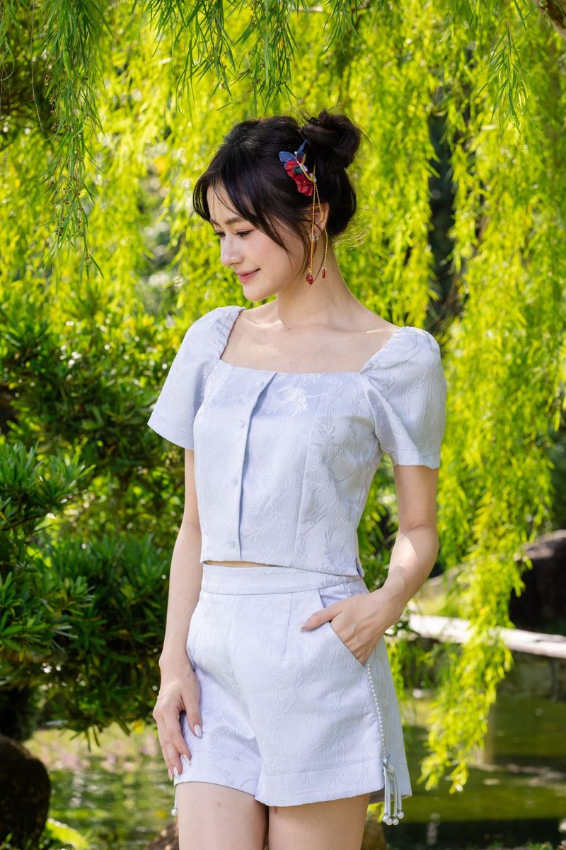 Aleena Jacquard Pearls Trims Jacquard Shorts Light Blue