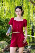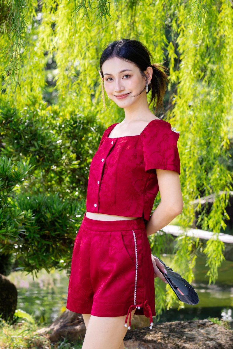 Aleena Jacquard Pearls Trims Jacquard Shorts Scarlet