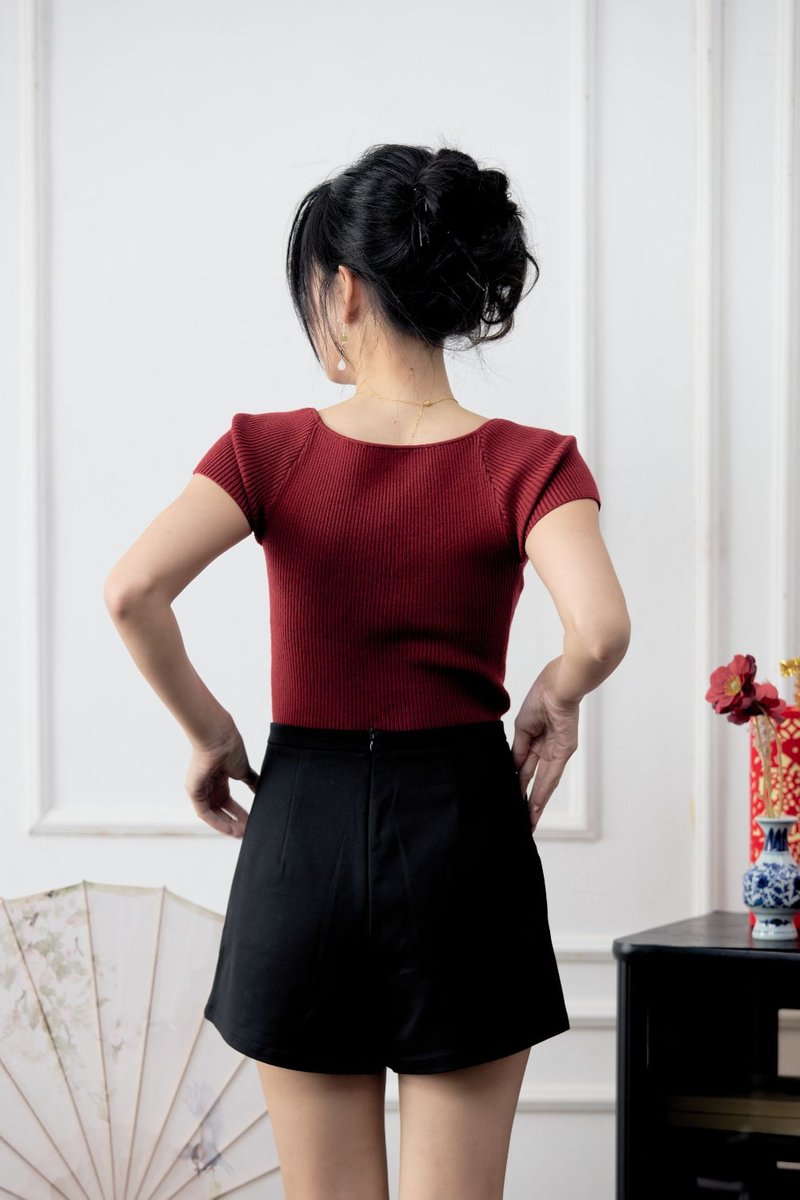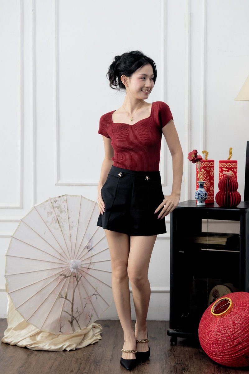 Model P is HEIGHT 165CM, PTP 14.4”, WAIST 12.8”, HIPS 17.6”, wearing size S.