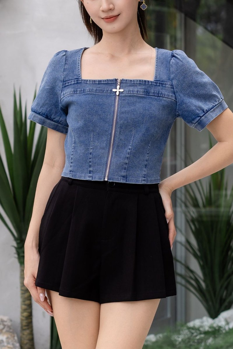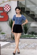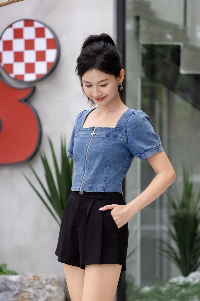 Model P is HEIGHT 165CM, PTP 14.4”, WAIST 12.8”, HIPS 17.6”, wearing size S.