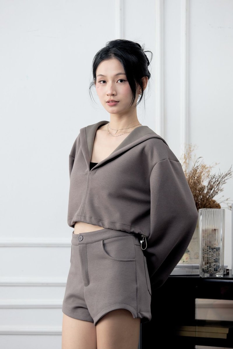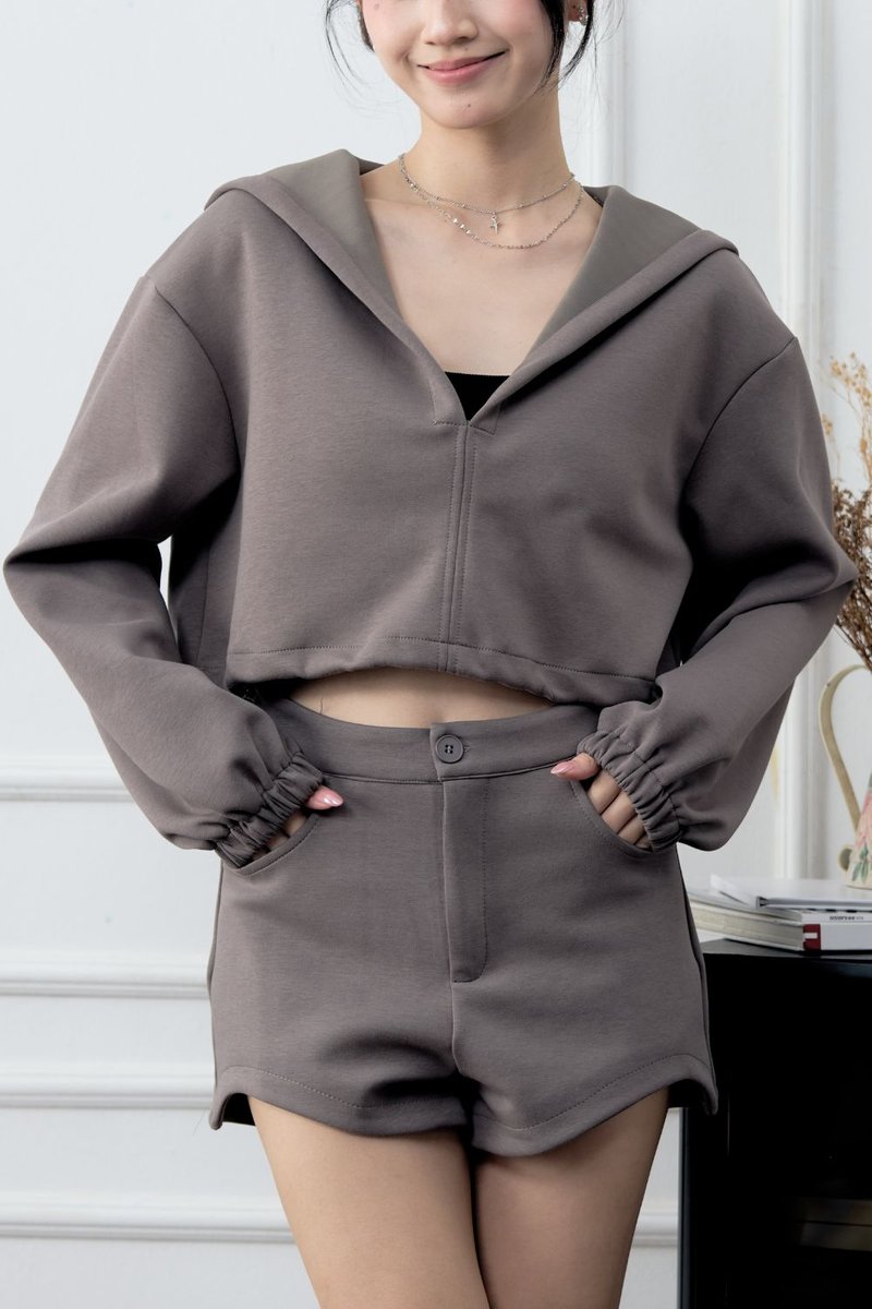The Kaitlyn Sweatshorts blend sporty practicality with an effortlessly chic edge, perfect for off-duty days or casual outings. Designed with a zip and button closure at the center front, they offer a clean and structured look while maintaining everyday comfort. Featuring two functional side pockets and two patch pockets at the back, these shorts are both stylish and convenient for carrying essentials. Crafted from a polyester blend fabric with slight stretch, they provide flexibility and a smooth fit. The slightly fitted silhouette flatters your shape, while the longer back length ensures extra coverage and confidence in movement.