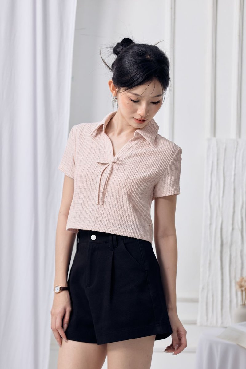The Lysandra Shorts with Pleats bring together classic tailoring and casual charm for an effortlessly polished look. Made of mid-thick cotton twill fabric with a non-stretch finish, they offer structure and durability while keeping a refined silhouette. Designed with front pleats for a touch of sophistication, these shorts feature a slightly A-line cut that flatters the figure. The front zip and button closure ensure a clean, secure fit, while two functional side pockets add practicality. Finished with decorative pocket flaps at the back and double belt loops at the front waist, they’re perfect for both smart-casual and weekend outfits.