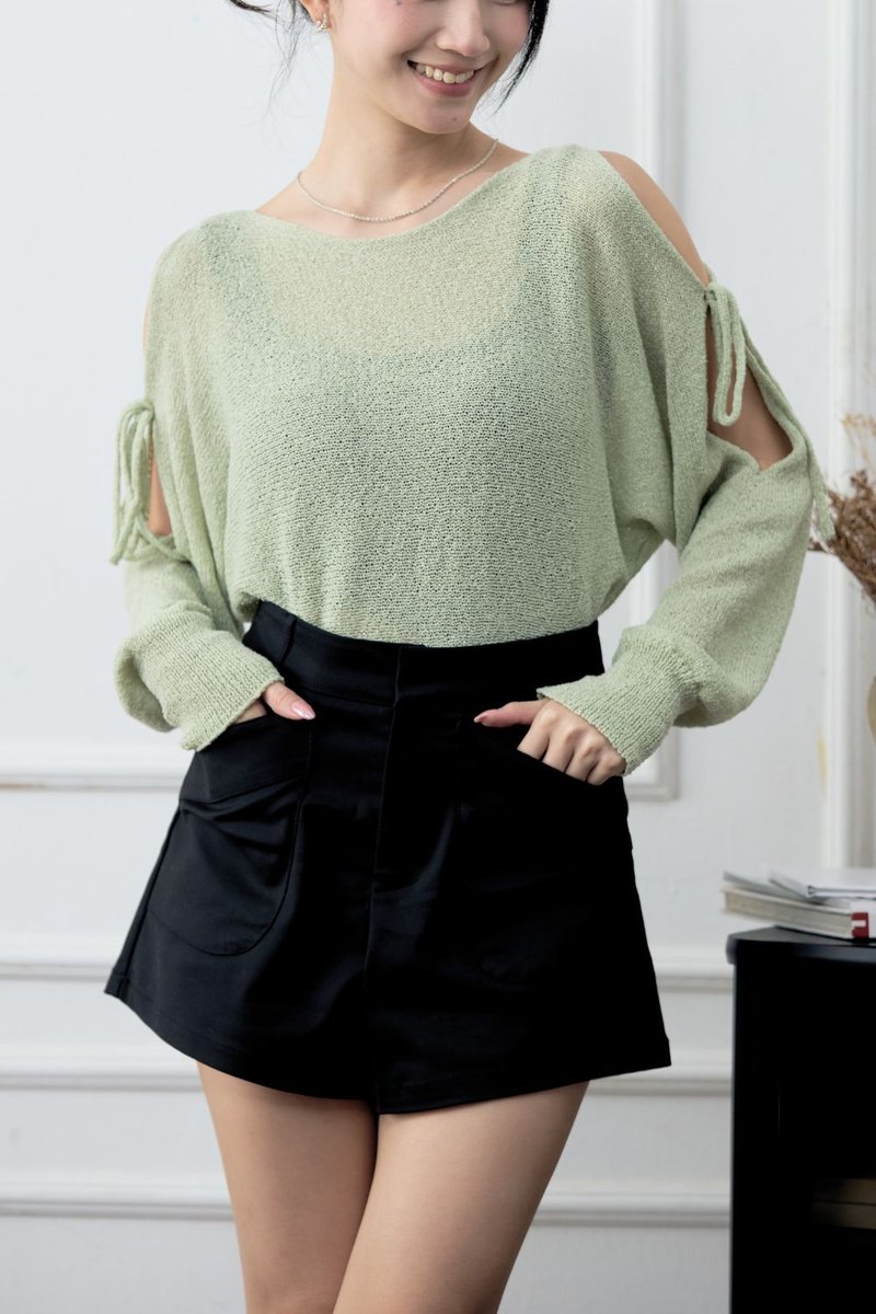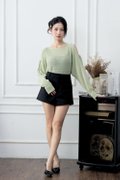 Model P is HEIGHT 165CM, PTP 14.4”, WAIST 12.8”, HIPS 17.6”, wearing size S.