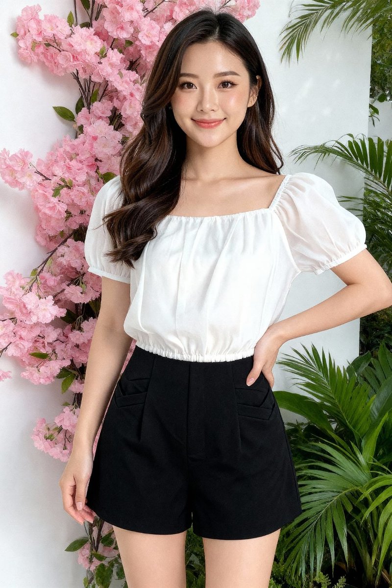 Model P is HEIGHT 165CM, PTP 14.4”, WAIST 12.8”, HIPS 17.6”, wearing size S.