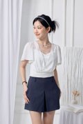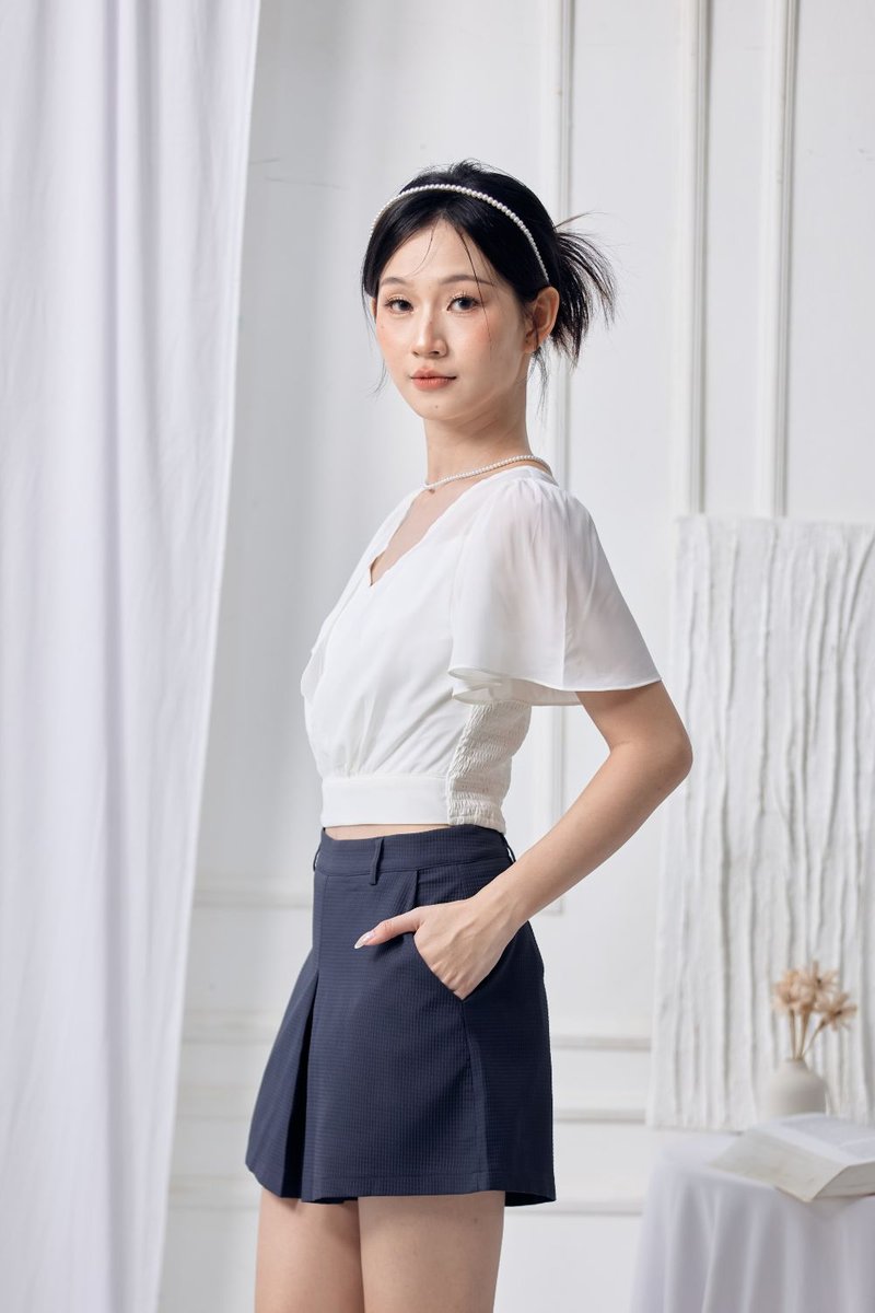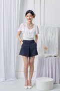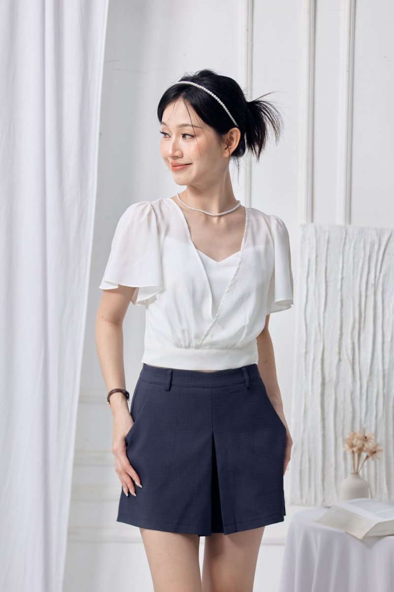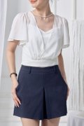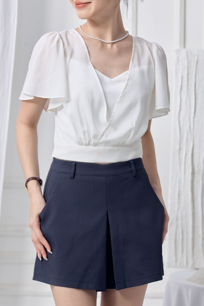 The Talwyn Waffle Textured Pleated Shorts combine the comfort of shorts with the elegance of a skirt-inspired silhouette. Made of waffle textured polyester blend fabric, it offers a structured yet breathable feel that’s perfect for daily wear. Designed with a center pleat detail, it adds volume and movement, creating a flowy illusion while maintaining the practicality of shorts. Featuring two functional side pockets and belt loops for versatile styling, it allows effortless pairing with both casual and dressy tops. Finished with an invisible zip opening for easy wear and fully lined with soft knit fabric for added comfort.