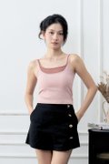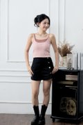 Model P is HEIGHT 165CM, PTP 14.4”, WAIST 12.8”, HIPS 17.6”, wearing size S.