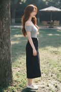 Model Y is HEIGHT 162CM, PTP 16.4”, WAIST 12.4”, HIPS 17”, wearing size S.