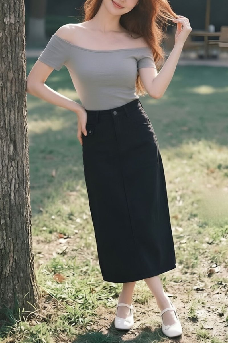 Therya Midi Skirt is a modern wardrobe staple designed with a clean and structured silhouette. Crafted from mid-weight polyester-cotton blend twill fabric, it offers durability with a polished finish. Worn in a relaxed fit, the straight silhouette is enhanced by a centre back slit for ease of movement. Functional details include belt loops, front pockets with decorative flaps, and patch pockets at the back. Finished with a zip fly and button closure at the front, this skirt balances practicality with effortless everyday style.