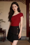 Brinley Asymmetrical Overlap Chinese Skirt is a modern cheongsam-inspired skirt that combines layered detailing with elegant accents. Made of polyester blend fabric, it features an overlap folding effect for a stylish layering look. The decorative jade Chinese button with hanging removable golden tassel adds a refined and playful touch. Lined with thick knit shorts lining, it ensures comfort and coverage. Finished with an invisible zip closure at back for easy wear.