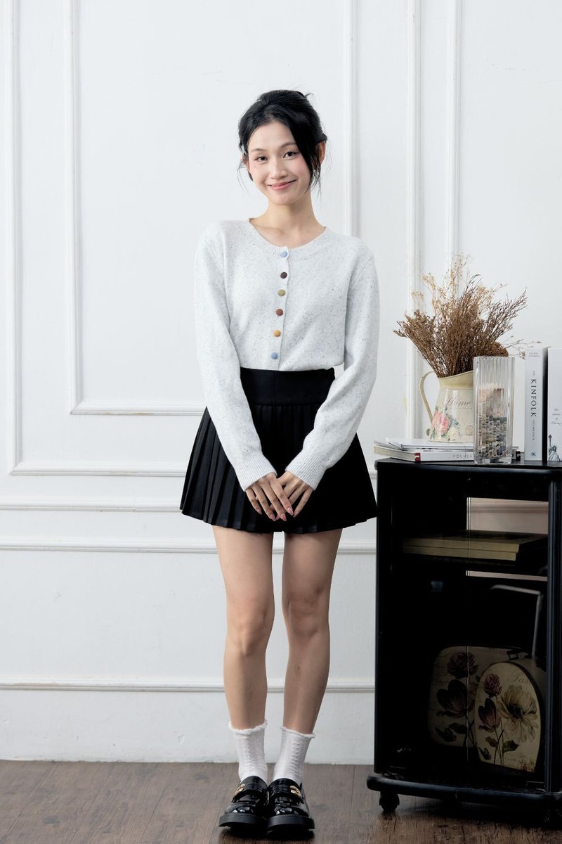 The Emberlyn Pleated Suit Fabric Skirt combines elegant tailoring with effortless wearability, crafted from polyester suit fabric for a structured yet comfortable feel. Designed with custom pleat widths, the pleats start before the tummy to subtly cover the lower abdomen while flattering the hips. The A-line silhouette creates a classic, feminine shape, and the built-in stretchable knit shorts lining ensures comfort and confidence. Finished with an invisible side zip for a clean, seamless look, this skirt is versatile for both office styling and casual chic outfits.
