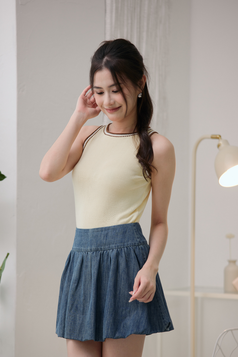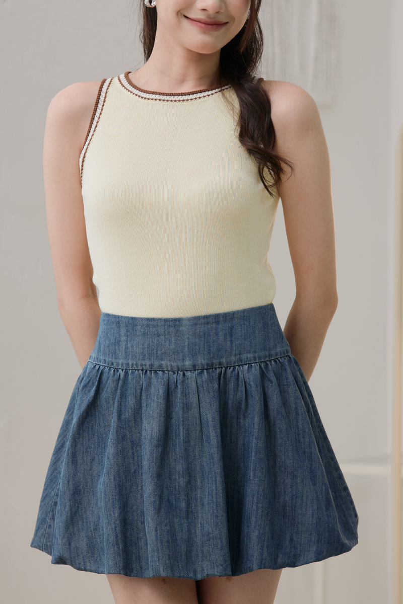 Playful volume meets laid-back denim in the Averra Bubble Denim Skirt. Designed in a bubble-shaped silhouette, this mini skirt features a wide waistband to accentuate the waist, with soft gathers falling from it for a light, airy shape. Crafted from acid-washed lightweight denim with a non-stretch finish, it’s fully lined with knitted safety shorts for comfort and ease of movement. An invisible centre-back zip ensures a clean, fuss-free closure.