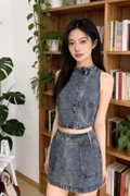 Vivia Denim A-Line Skort is a versatile wardrobe staple crafted from mid-weight cotton washed denim for a structured yet flattering silhouette. Designed with an A-line cut and a wide waistband, it offers a clean shape that enhances the waistline. Fully lined with inner shorts, it ensures comfort and confidence with a non-sheer, non-stretch finish. Functional pockets and belt loops add everyday practicality, while the back zip closure allows for easy wear. Worn on its own or paired with the matching top (Style 13112503), it creates a cohesive and modern denim co-ord look.