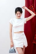 Model Y is HEIGHT 162CM, PTP 16.4”, WAIST 12.4”, HIPS 17”, wearing size S.