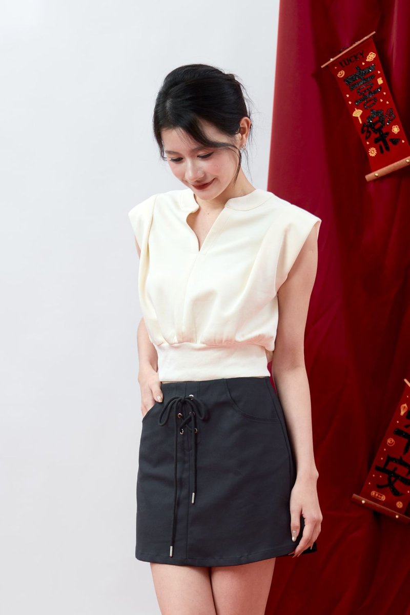 Model Y is HEIGHT 162CM, PTP 16.4”, WAIST 12.4”, HIPS 17”, wearing size S.