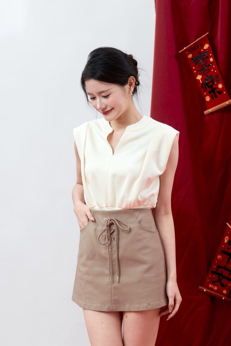 Zenobia Eyelet Lace-Up Skirt Khaki