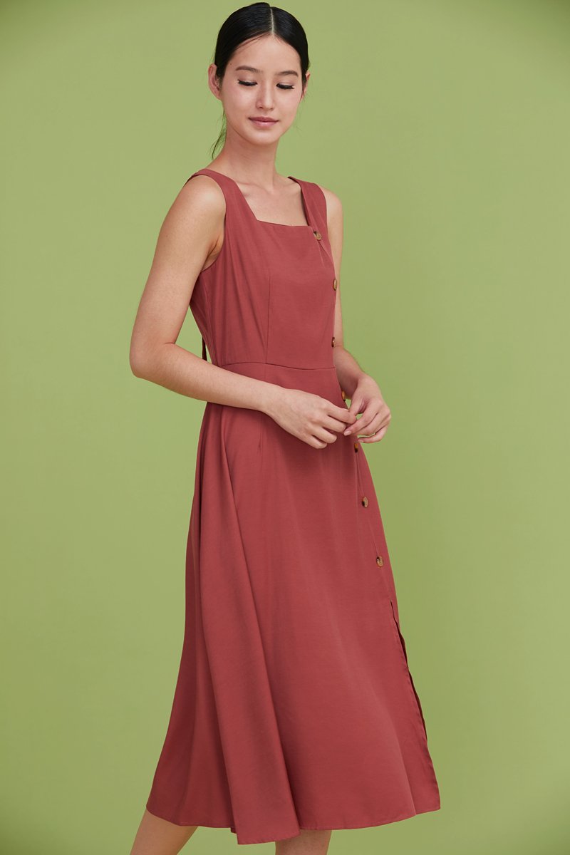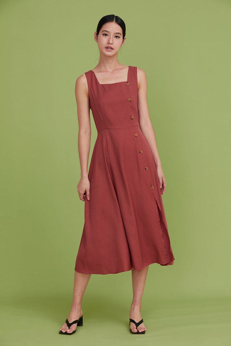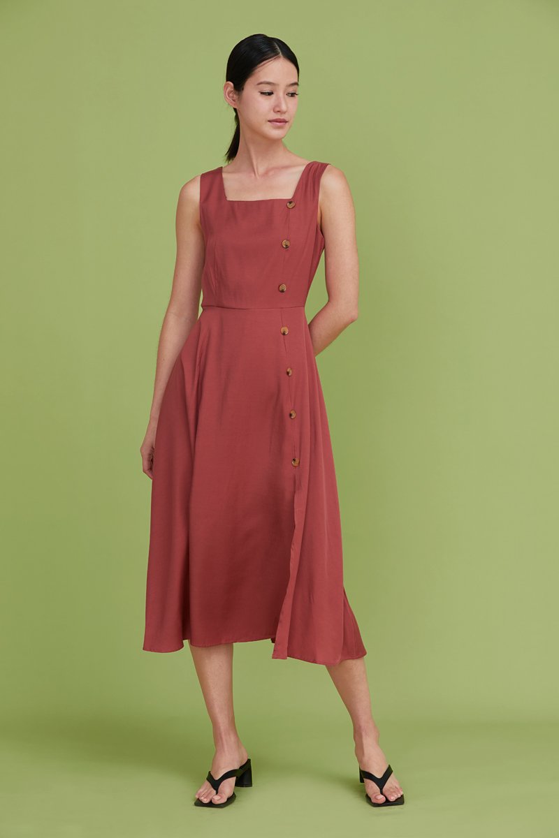 Moriko Buttoned Midi Dress Brick