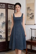 Celia Denim Maxi Dress is a contemporary and versatile piece crafted from cotton mid-weight textured denim with a soft, structured feel. Designed with a sleeveless cut and square neckline, it offers a flattering and modern silhouette. The V-shaped waistline enhances the figure, while the flare silhouette creates graceful movement. Functional pockets add practicality, and a concealed side zipper ensures easy wear. Finished at maxi length with a slight stretch for comfort, this unlined, non-sheer dress combines classic denim appeal with effortless elegance.