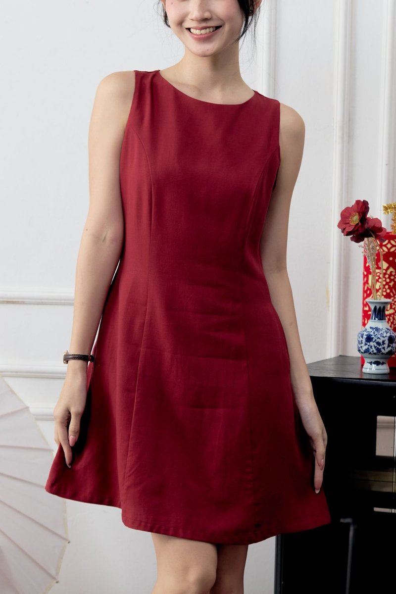 The Elayne Peephole Back Linen Dress is a chic and breathable piece, crafted from linen-cotton material that offers natural texture and comfort. Designed with a boat neck neckline for an elegant silhouette, it features a subtle peephole at the back that elevates the simplicity of the dress. Princess darts run from the bust to the hem to flatter the figure, while the slightly fitted cut and A-line shape create a graceful, feminine look. Fully lined for comfort and coverage, this dress is lightweight, airy, and perfect for both casual and semi-formal occasions. Note: ironing is recommended after washing to maintain its crisp finish.