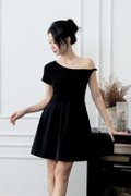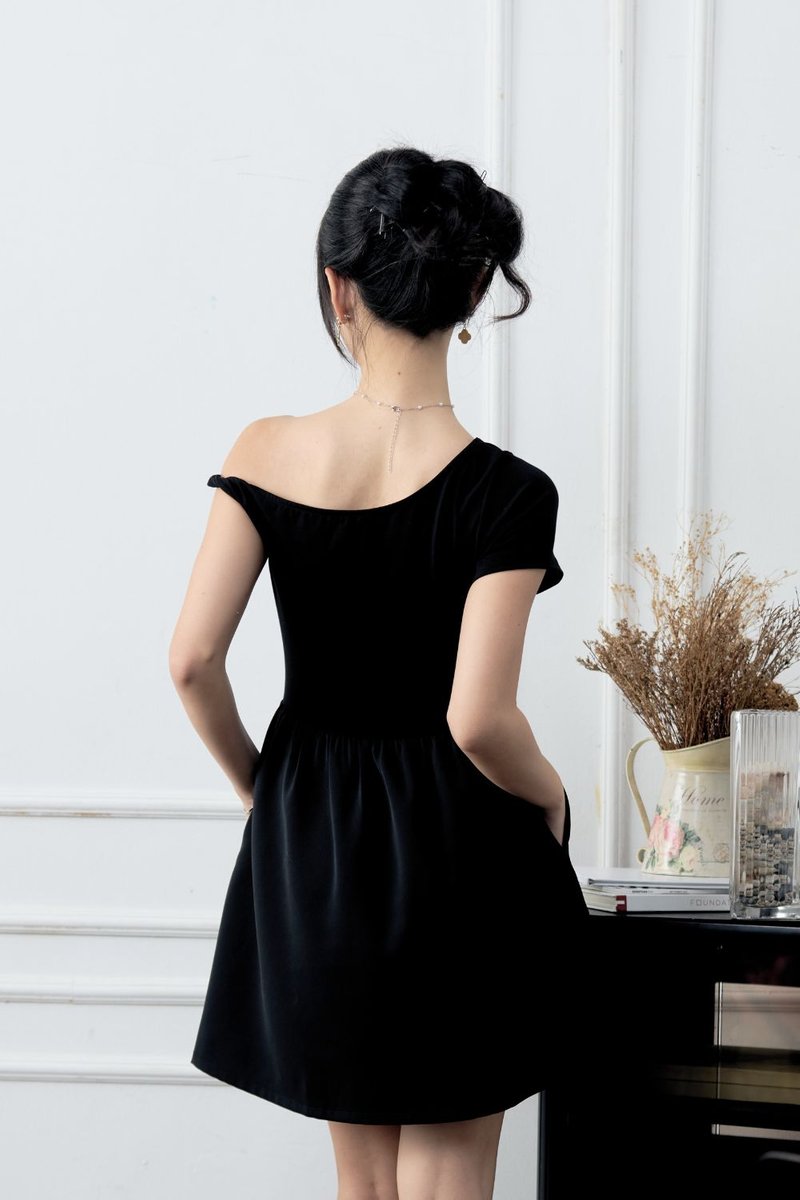 The Aeriea Asymmetrical Shoulder Mix Fabric Dress blends modern structure with effortless femininity. Designed with a knit top and a flowy polyester skirt, it contrasts textures beautifully to elevate a simple silhouette. The top features comfortable stretch and a unique twist-shoulder detail that creates a striking asymmetrical neckline with a single sleeve. Fitted at the bodice and finished with a flare A-line skirt, it shapes the body softly while keeping the movement light and flattering. Complete with functional side pockets and a lined skirt for comfort and ease—perfect for both casual days and dressier moments.