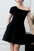 Aeriea Asymmetrical Shoulder Mix Fabric Dress Black