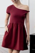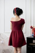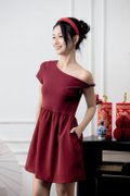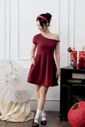 Aeriea Asymmetrical Shoulder Mix Fabric Dress Wine