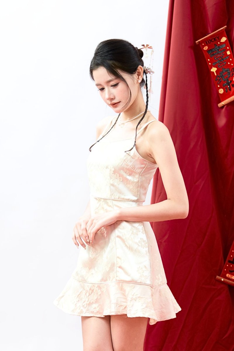 The Liyra Floral Soft Jacquard Dress is a graceful and feminine piece, crafted from soft-touch floral jacquard fabric that feels gentle and non-irritating on the skin. Designed with a sleeveless silhouette and adjustable straps, it offers a comfortable, customizable fit. Fully lined and non-sheer, this dress features tone-on-tone piping details for a refined finish, functional pockets for everyday ease, and a peplum flare hem that enhances movement. The slightly fitted bodice flows into a flattering flared silhouette, making it an elegant yet wearable choice for both casual outings and special occasions.