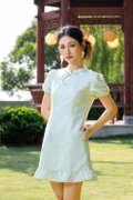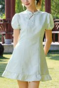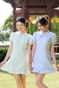 Virelith Cheongsam Dress With Lotus Hem Mint