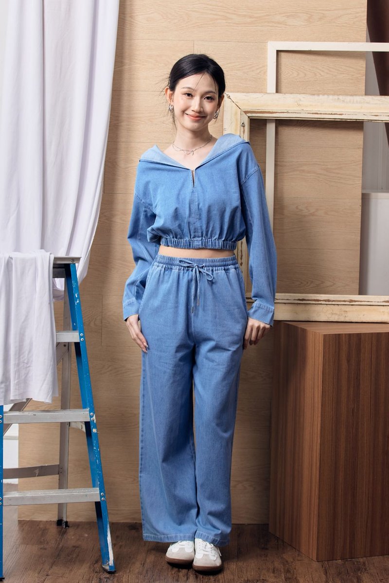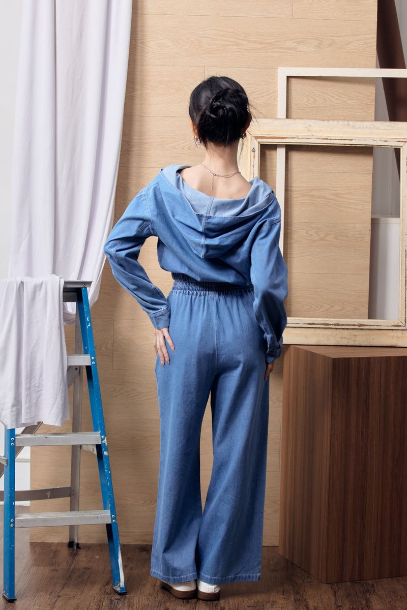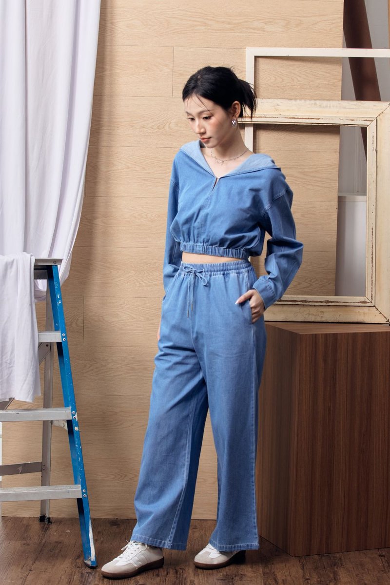 The Annette Tencel Soft Denim Pants redefine comfort dressing with a clean, effortless silhouette made for everyday wear. Crafted from Tencel soft denim fabric, they offer the look of denim with an irresistibly smooth, gentle touch that drapes beautifully with every step. Designed with a high-waisted fit and a flowy straight wide-leg cut, these pants elongate the frame while keeping the overall vibe relaxed and breathable. The elasticated waistband with a drawstring provides adjustable comfort, making them perfect for long days on the go. Functional side pockets add practicality without compromising the sleek shape, and the washed denim finish brings that lived-in, easygoing charm. Unlined, non-sheer, and full-length, these pants move effortlessly between casual days, cafe runs, and travel moments.