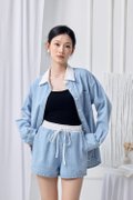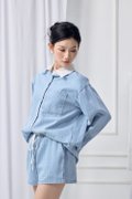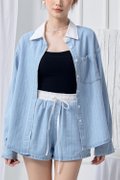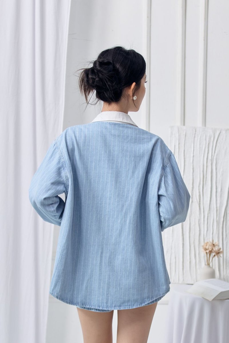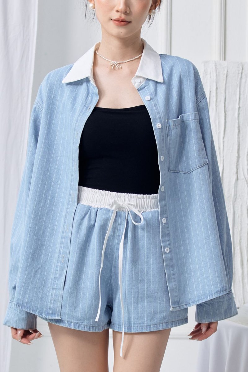 A fresh twist on classic denim — the Blaine Contrast Denim Stripe Set blends structure with effortless style.The shirt features a contrast collar and white buttons for that pop of detail, while the shorts come with a sporty contrast waistband and relaxed A-line fit. Wear them together for a chic co-ord look or style separately for easy everyday vibes.