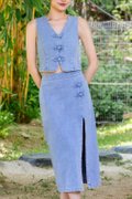 Calantha Cheongsam Denim Midi Skirt Light Wash