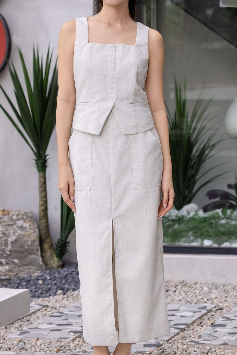 Model P is HEIGHT 165CM, PTP 14.4”, WAIST 12.8”, HIPS 17.6”, wearing size S.