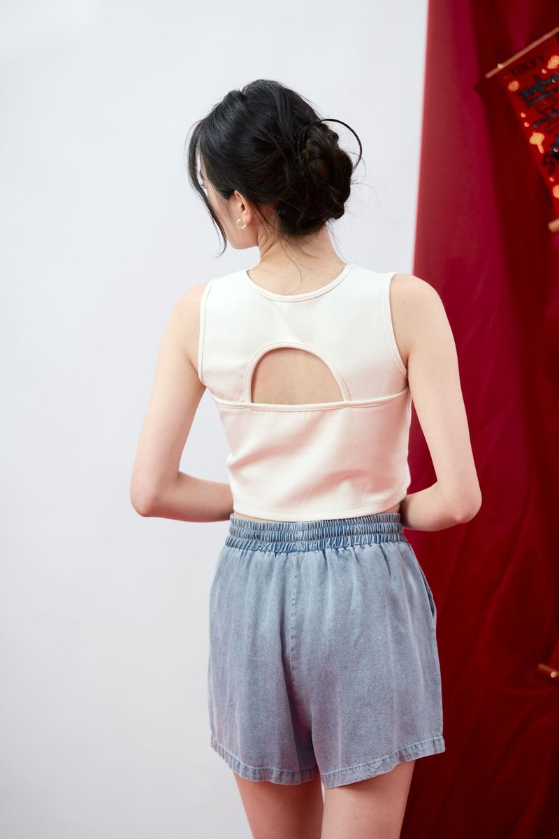 Model Y is HEIGHT 162CM, PTP 16.4”, WAIST 12.4”, HIPS 17”, wearing size S.