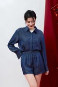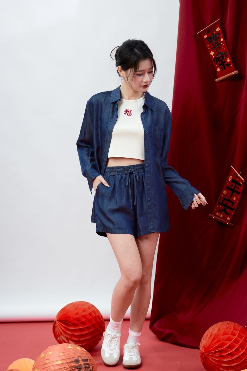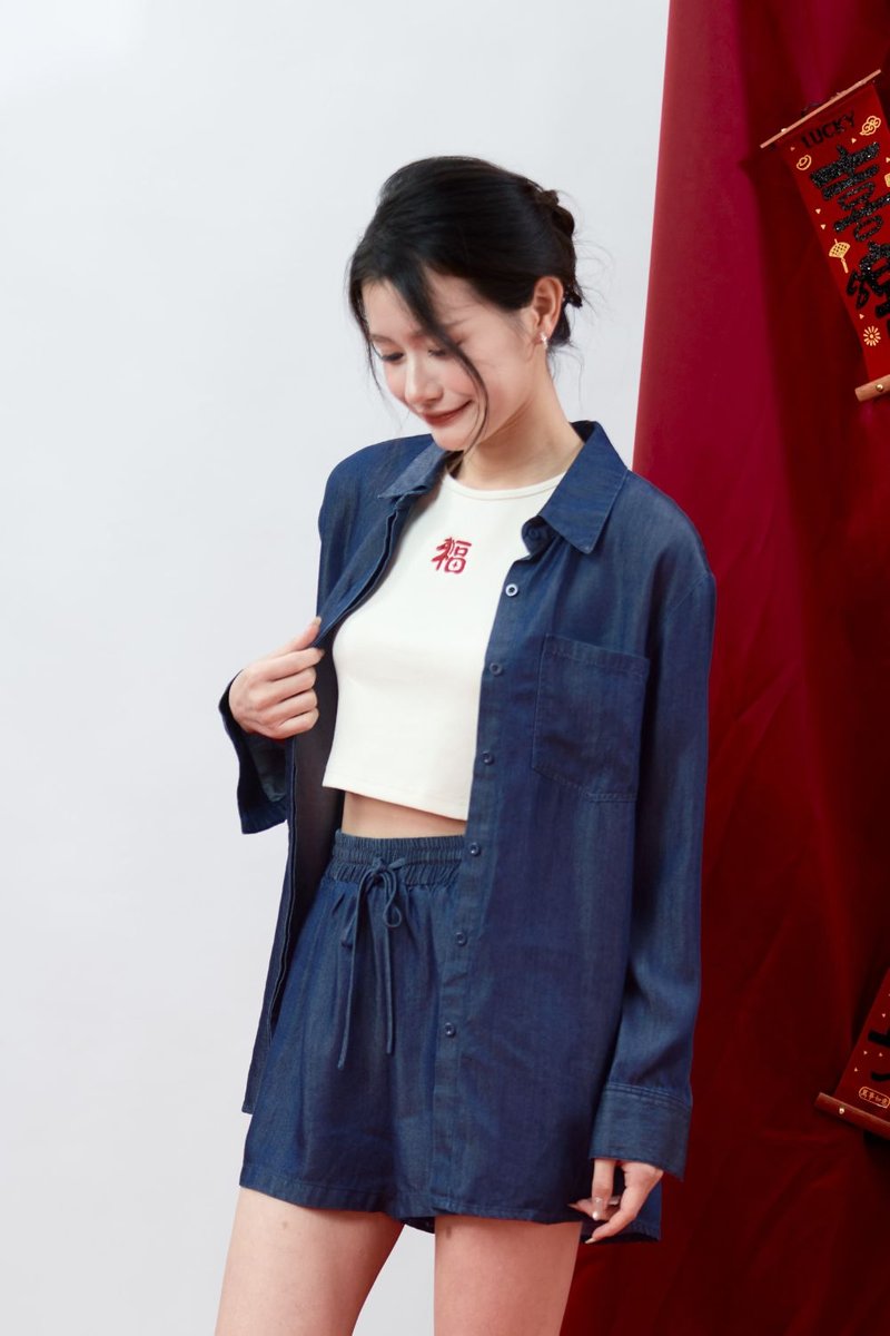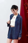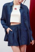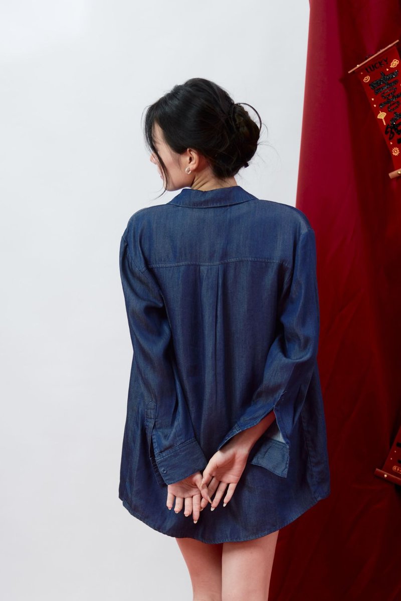 The Melanthis Soft Denim Shirt offers a relaxed and contemporary take on classic denim styling. Made of soft denim fabric with acid wash effect, it delivers a casual yet refined finish. Designed with an oversized fit, the silhouette provides effortless comfort and versatility. Functional details include a button up closure in front with cover placket for a clean front appearance, one patch pocket in wearer left side for utility, and button in cuffs with slit for ease of movement and adjustable wear.