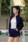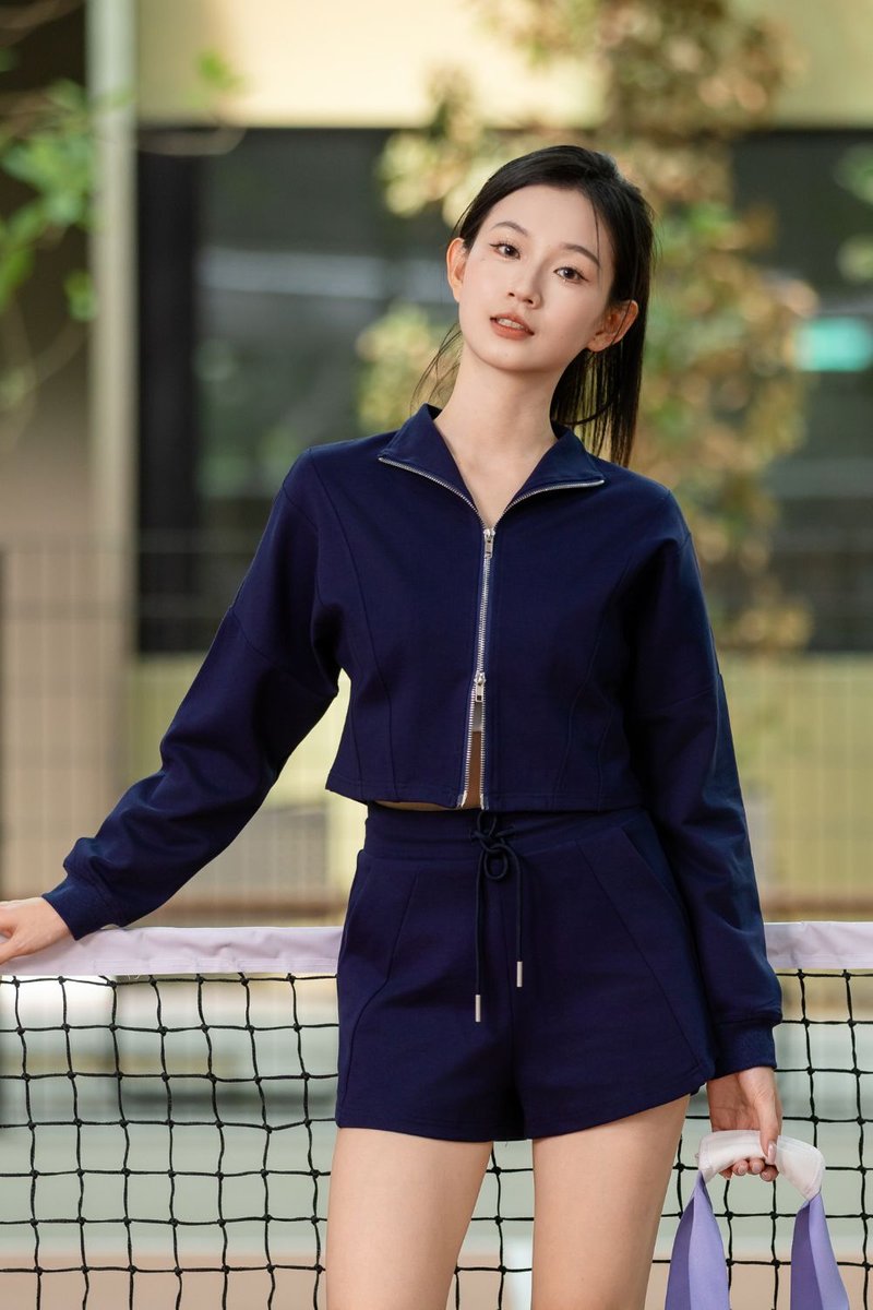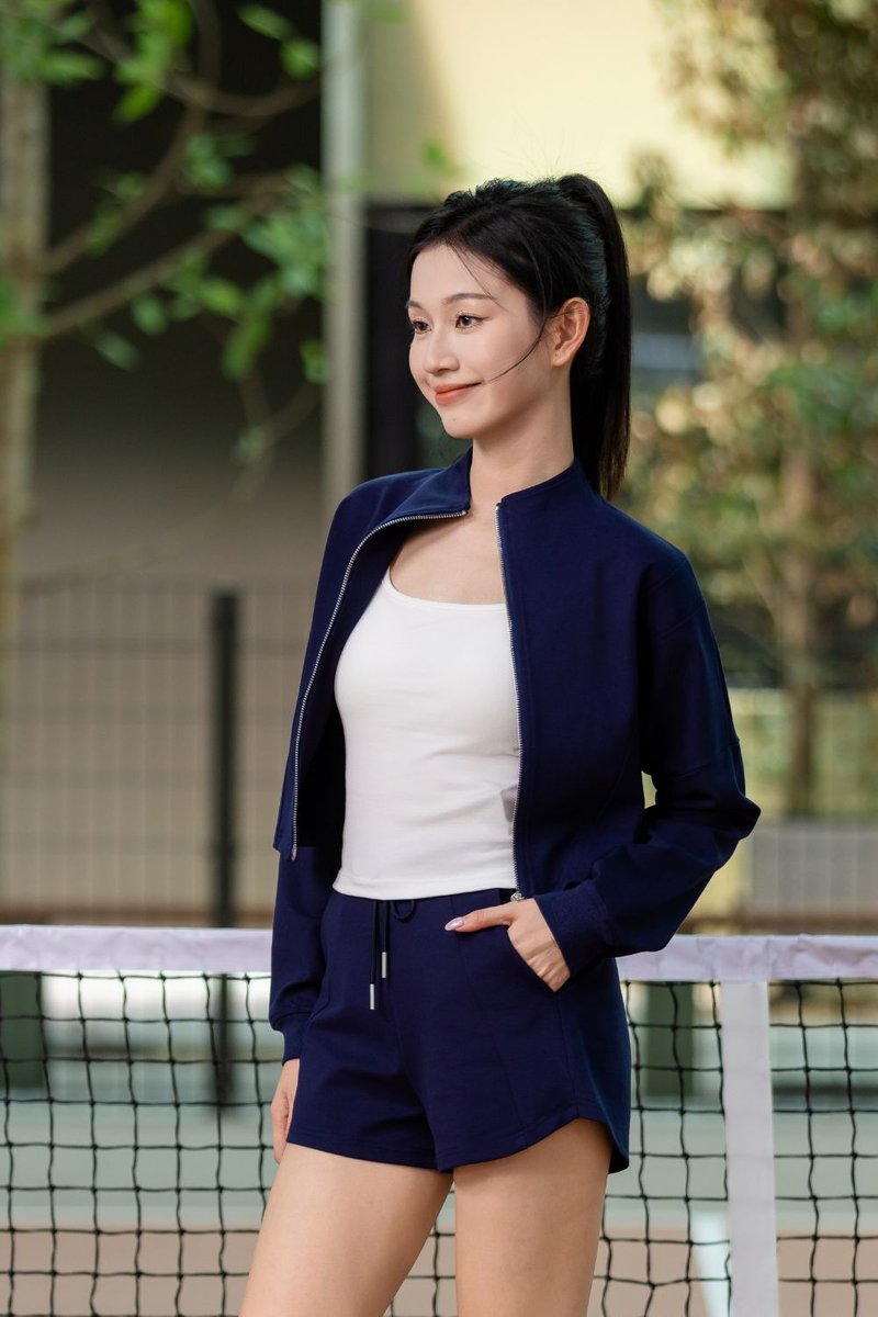 Rivena Athleisure Drawstring Curve Hem Shorts is a sporty essential designed to flatter while maintaining comfort. Made of 260g ponte de roma cotton material, it offers structure with a soft and durable feel. Featuring a slightly adjustable drawstring at front, center back has elastic gather for flexible wear. Designed with 2 side pockets for practicality. The dart line along thighs helps visually elongate legs, while the curve hem design enhances a taller appearance. Finished in an A-line silhouette for a flattering and easy fit.