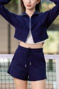 Rivena Athleisure Drawstring Curve Hem Shorts Midnight