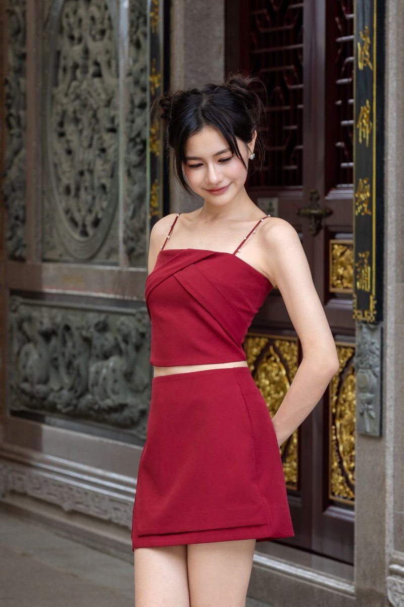 Sabine Pearls Strappy Crop Top Scarlet