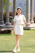 Model P is HEIGHT 165CM, PTP 14.4”, WAIST 12.8”, HIPS 17.6”, wearing size S.