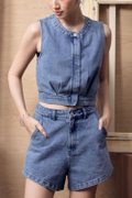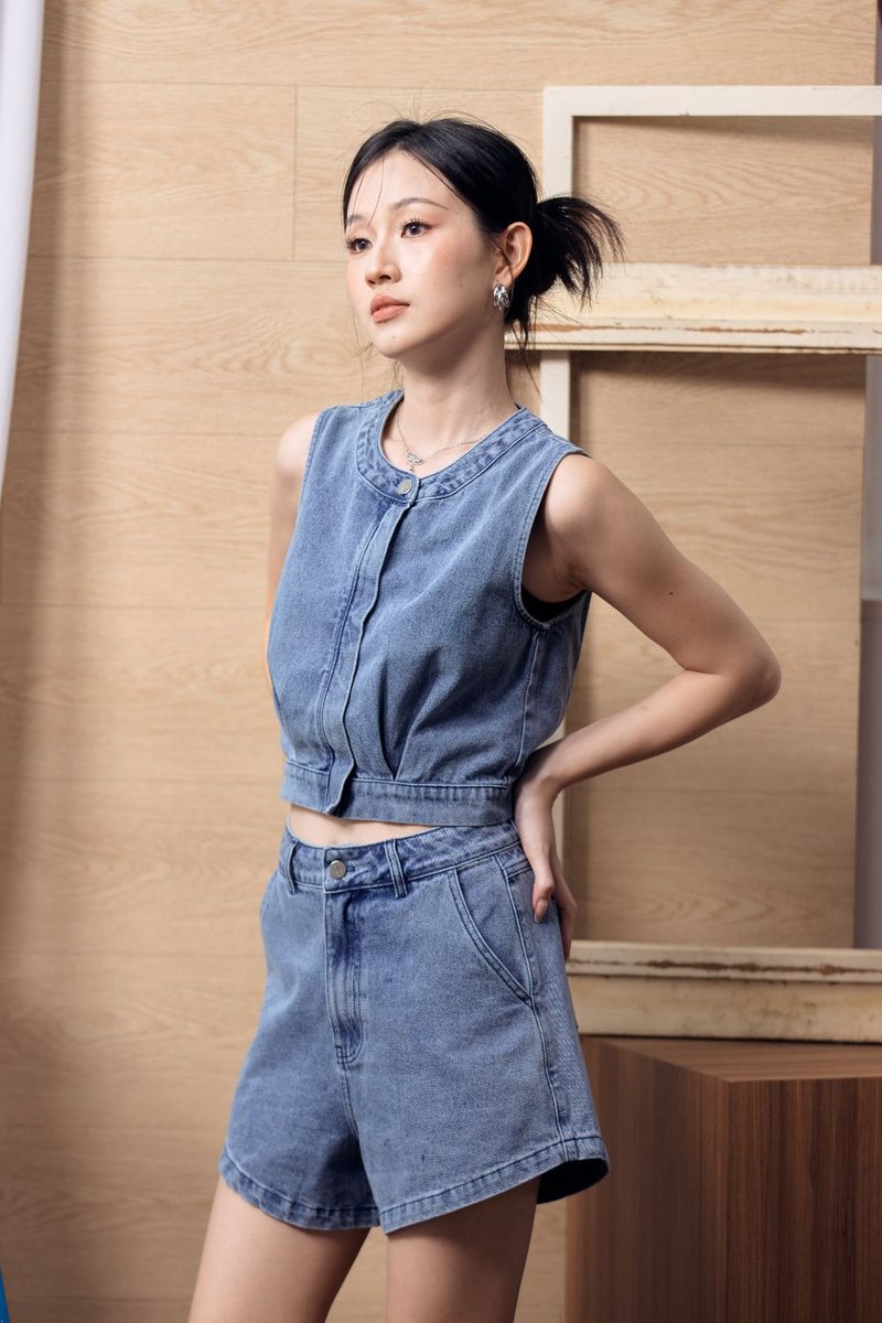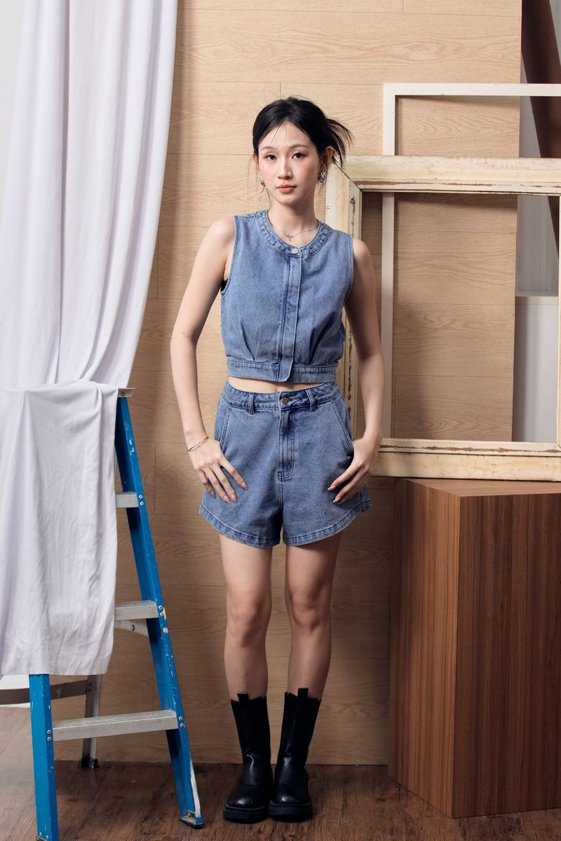 The Breanna Denim Shorts bring effortless style and everyday versatility, crafted from a cotton-blend washed denim that holds its shape beautifully. Designed to pair seamlessly with its matching top (13052504), these shorts feature functional pockets for practicality and a flattering curve hem that adds softness to the structured denim look. A classic zip-and-button closure keeps the silhouette clean, while belt loops offer styling flexibility. Unlined, non-sheer, and comfortable for all-day wear, this pair is an easy essential for casual days and coordinated denim sets.