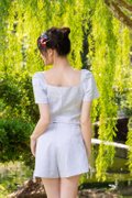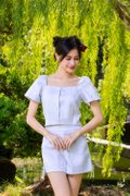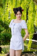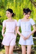 Model Y is HEIGHT 162CM, PTP 16.4”, WAIST 12.4”, HIPS 17”, wearing size S.