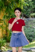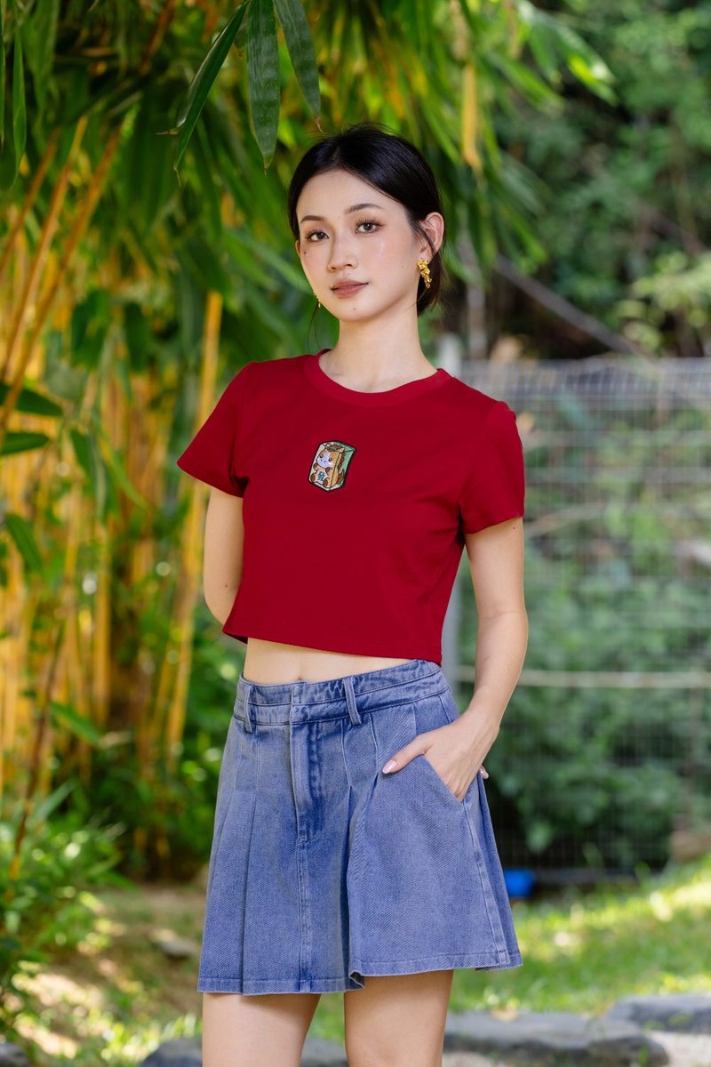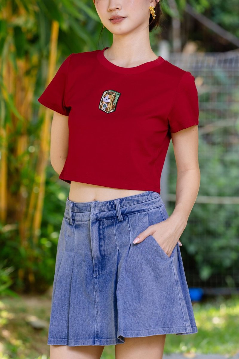 [RESTOCKED] MahJong Horse Embroidery Crop Top Scarlet