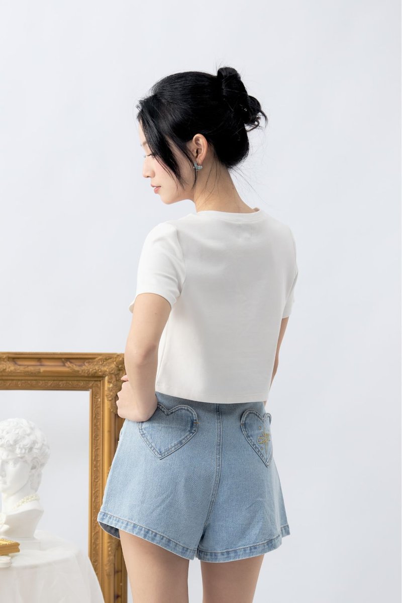 The Elfy Fairy Top is a playful yet elevated essential, crafted from 320GSM mid-stretch cotton-blend fabric for a soft, comfortable feel with just the right amount of structure. Designed in a cropped length and worn slightly fitted, it creates a flattering silhouette that’s easy to style. The centre-front embroidery adds a charming focal point, bringing a whimsical touch to this otherwise minimal piece. Versatile and effortless, it pairs perfectly with high-waisted bottoms for everyday wear.