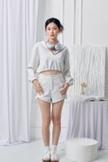 Model P is HEIGHT 165CM, PTP 14.4”, WAIST 12.8”, HIPS 17.6”, wearing size S.