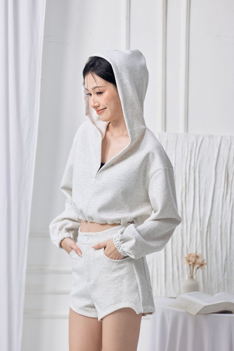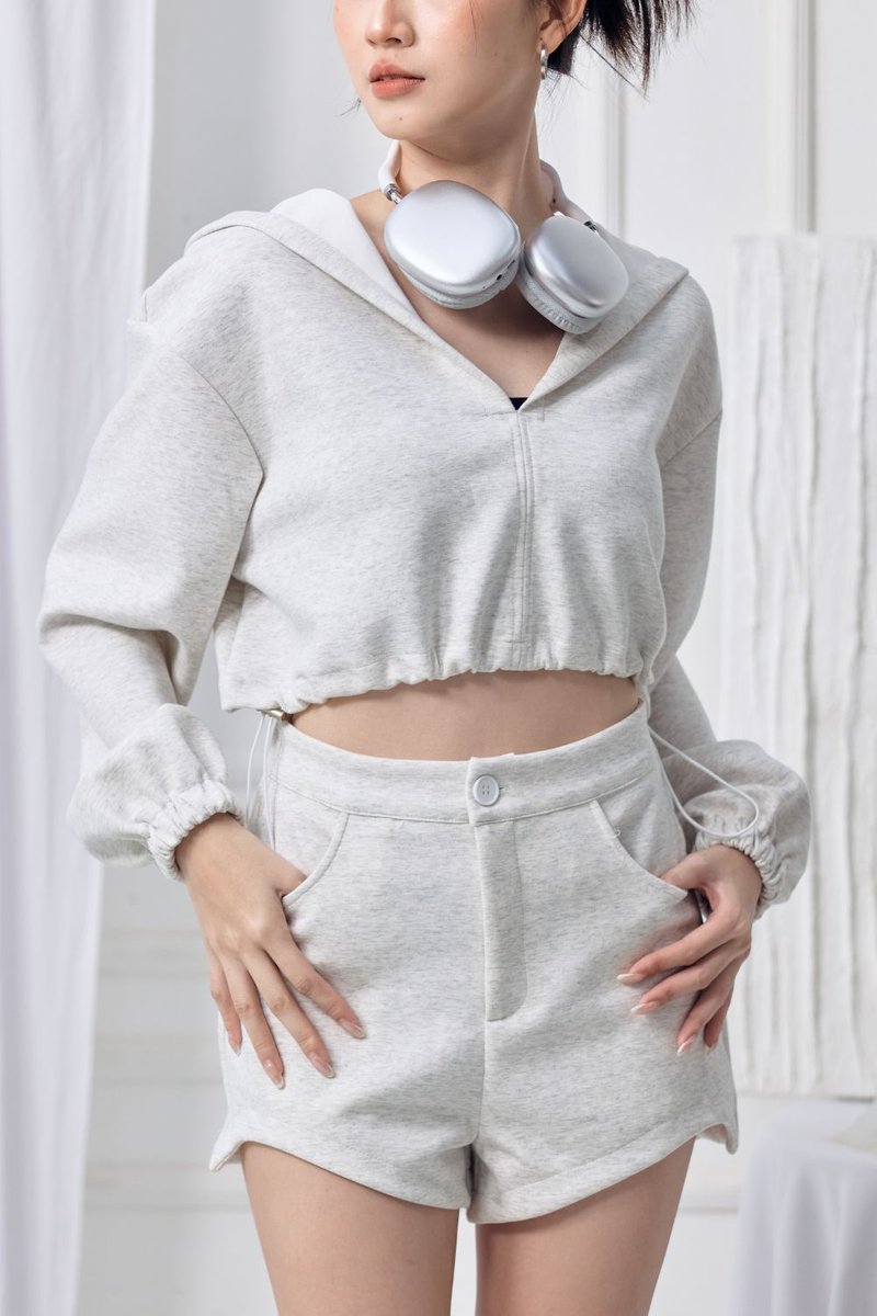 The Kaitlyn Cropped Hoodie brings a sporty yet feminine edge to your casual wardrobe. Designed in a cropped length with a slightly loose fit, it strikes the perfect balance between comfort and style. The V-neck design adds a flattering twist to the classic hoodie look, making it effortlessly chic for both lounging and going out. Featuring adjustable drawstrings at the hem for a customizable silhouette and elasticated cuffs for a neat finish, it ensures comfort and versatility. Made of polyester blend fabric with slight stretch, this hoodie offers softness, flexibility, and ease for everyday wear.