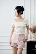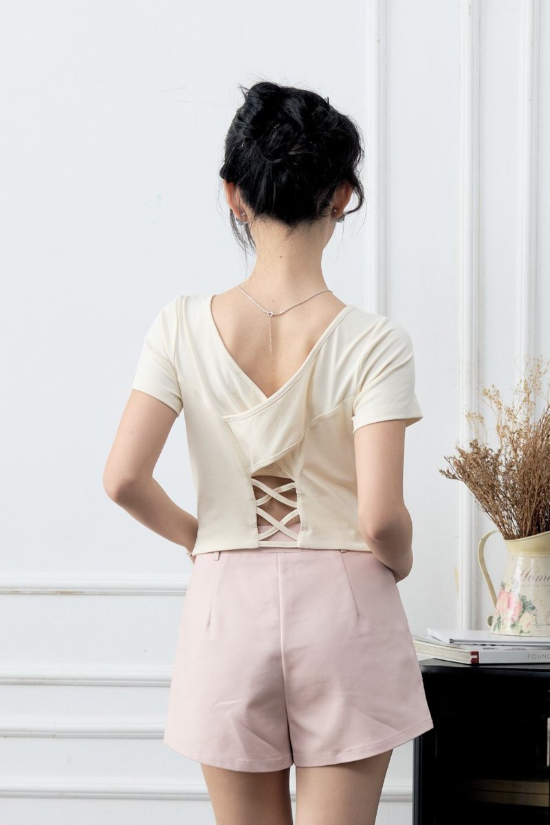 Larey Overlay Open Back Square Neck Top Cream