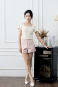 Model P is HEIGHT 165CM, PTP 14.4”, WAIST 12.8”, HIPS 17.6”, wearing size S.