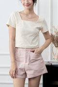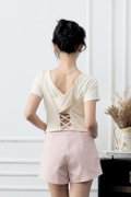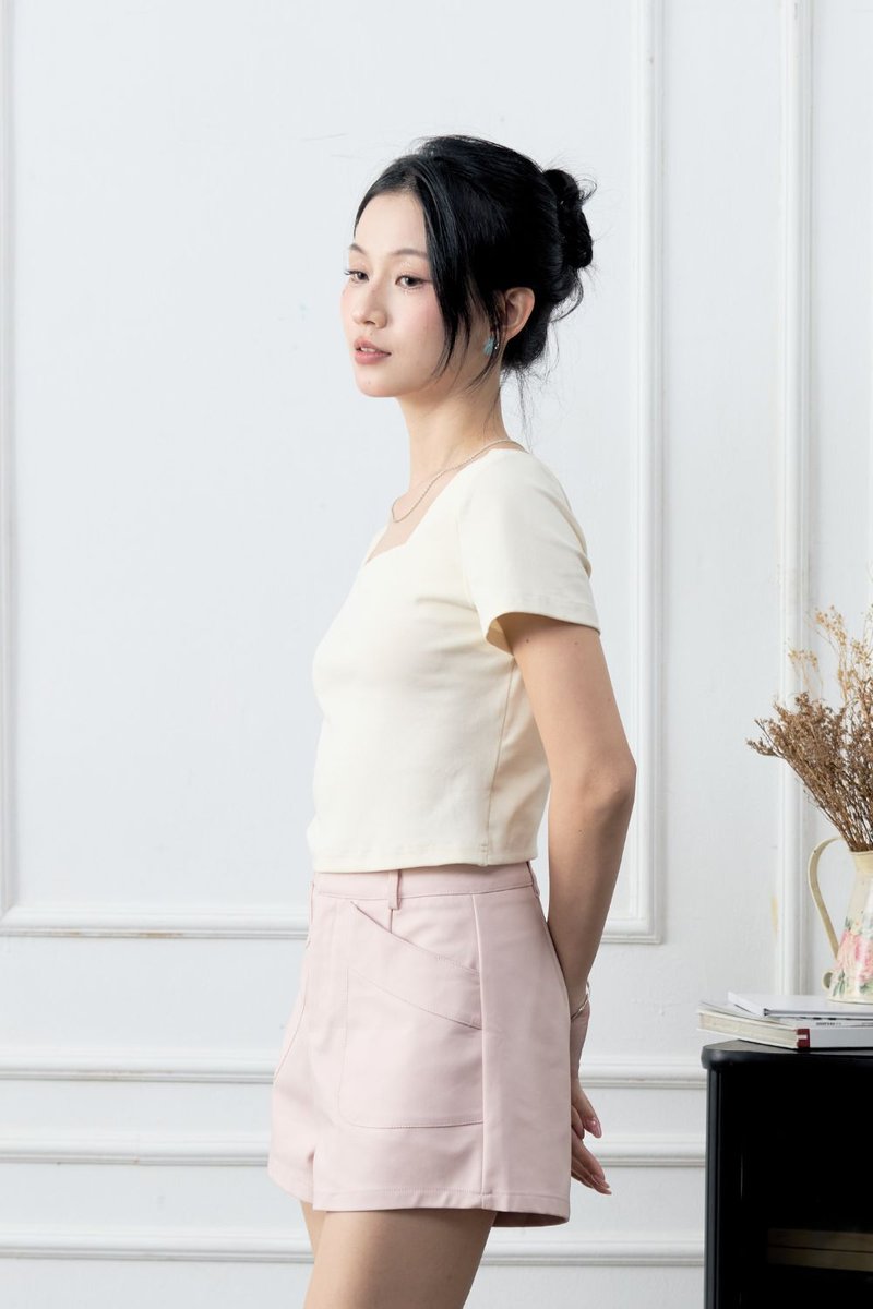The Larey Overlay Open Back Square Neck Tee delivers clean lines in the front and a striking statement at the back. Crafted from sturdy yet comfortable 280GSM cotton, it offers a smooth, non-sheer finish that keeps its shape well. The highlight sits behind—an overlap construction with a subtle lacing effect that adds movement, texture, and an elevated twist. Designed with a fitted, cropped silhouette and a modern square neckline, this top transitions effortlessly from casual days to light sport moments. Soft, breathable, and easy to style on its own or paired with high-waisted bottoms for a sleek, balanced look.
