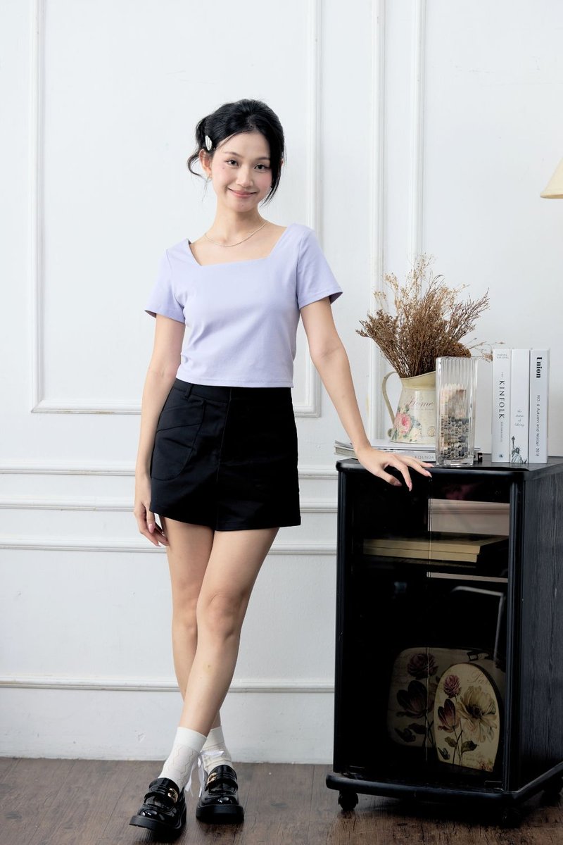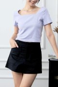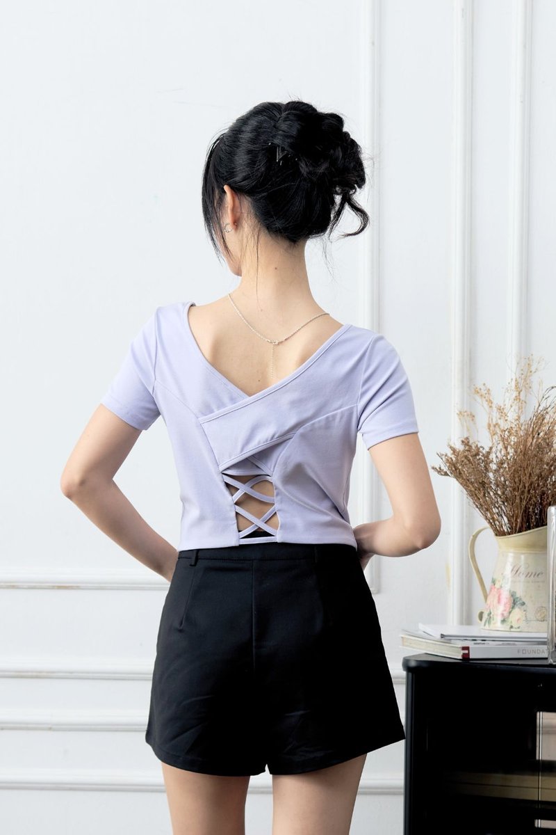 The Larey Overlay Open Back Square Neck Tee delivers clean lines in the front and a striking statement at the back. Crafted from sturdy yet comfortable 280GSM cotton, it offers a smooth, non-sheer finish that keeps its shape well. The highlight sits behind—an overlap construction with a subtle lacing effect that adds movement, texture, and an elevated twist. Designed with a fitted, cropped silhouette and a modern square neckline, this top transitions effortlessly from casual days to light sport moments. Soft, breathable, and easy to style on its own or paired with high-waisted bottoms for a sleek, balanced look.