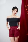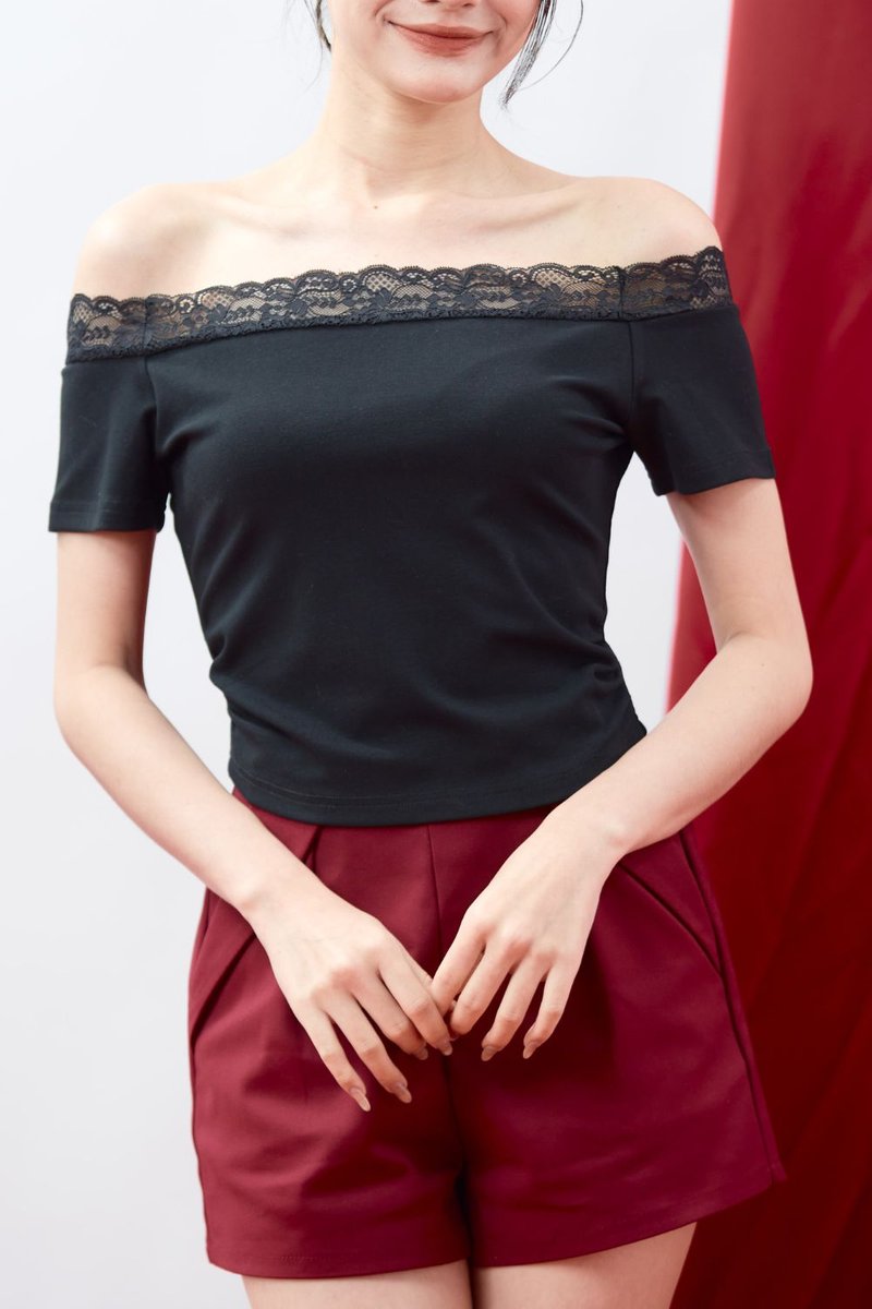 Lucette Off-Shoulder Lace Trim Jersey Top Black